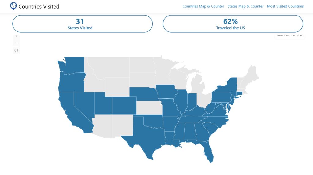 A list of 31 states visited