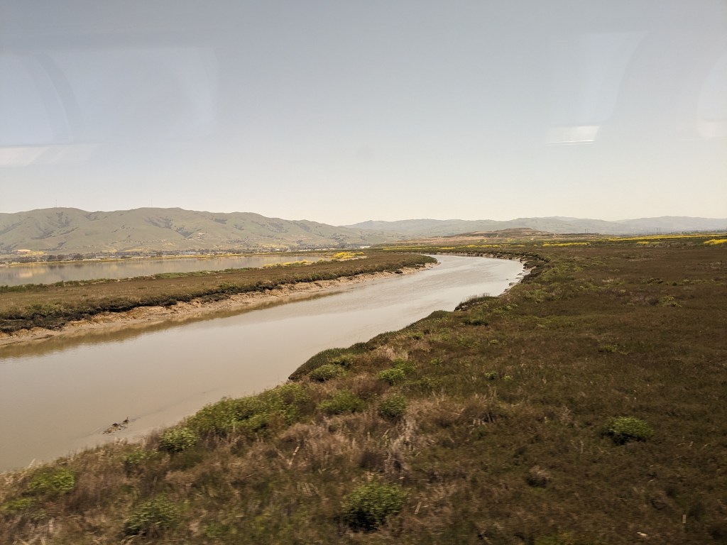 On the second day of the Amtrak journey, I woke up to the sights of drier, desiccated landscapes : a quilted patchwork of small town America, sprint-time blooming orchards, fecund farms, and man-made canal irrigation systems. California’s Central Valley – a stark contrast to yesterday’s trip – teleported me from a rainy, verdant world to a drier realm. Nonetheless, I took in the beauty to admire, and for someone domiciled in the state’s west coast – a more-urbanized and media dominant portion – I, a wandering sojourner, got a good reminder of what the rest of California represents.