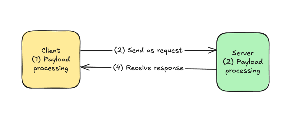 - Client-side application sends payload over on request, but message drops before reaching server.