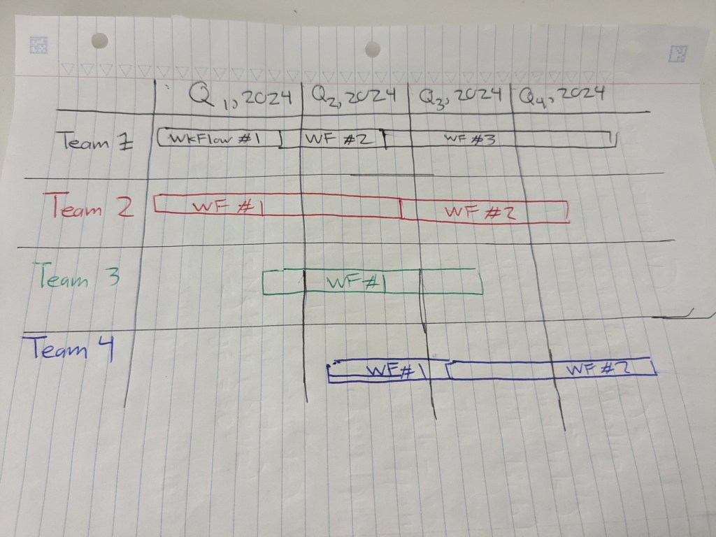 And there’s future quarters with more unknowns ( what’s happening in quarter’s 3 and 4 of the same year ? Do we know how many more teams and workflows we’re adding )? We don’t know. The engineers don’t know. Product owners don’t. Leadership & management doesn’t know. Not due to a lack of intellectual capability, but rather, the future is hard to predict. A stakeholder who promised to onboard three workflows can circle back six months later and say that they want to onboard a subset – or gasp, even none – of them.